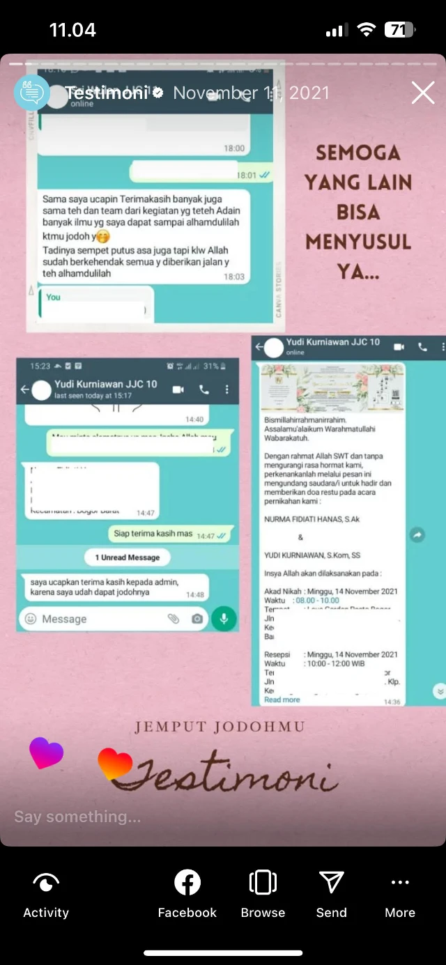 “Tadinya Sempat Putus Asa, Terima kasih buat tim dari kegiatan yang diadain Alhamdulillah dapat Jodohnya!”