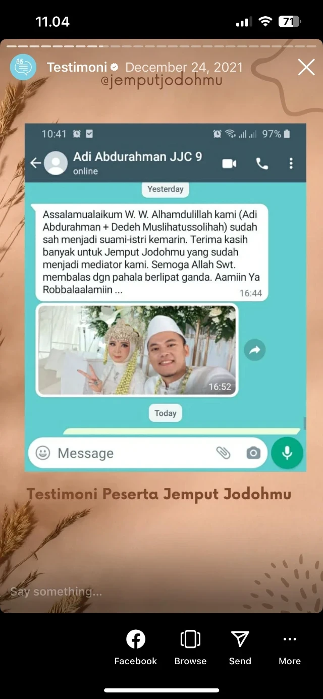 "Terima kasih banyak untuk jemputjodohmu yang sudah menjadi mediator kami"